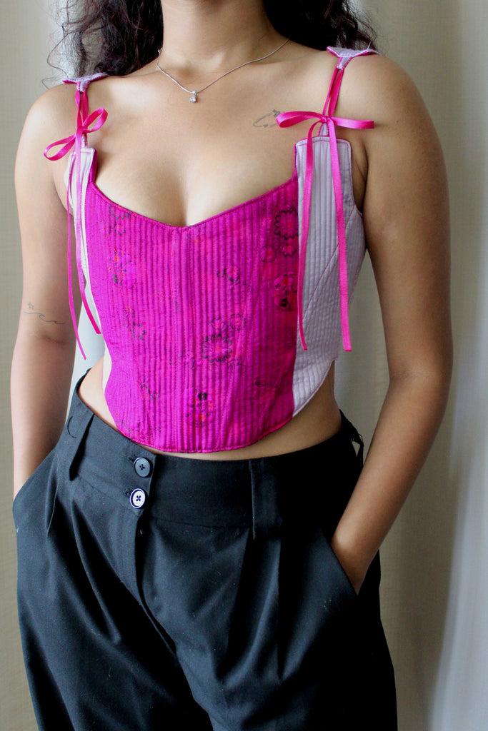 This corset has been reworked from a pre-loved upholstery fabric. Saved from landfill, the fabric has been upcycled into a modern silhouette that carries its history into a new life. One-of-a-kind, handmade and crafted to last.