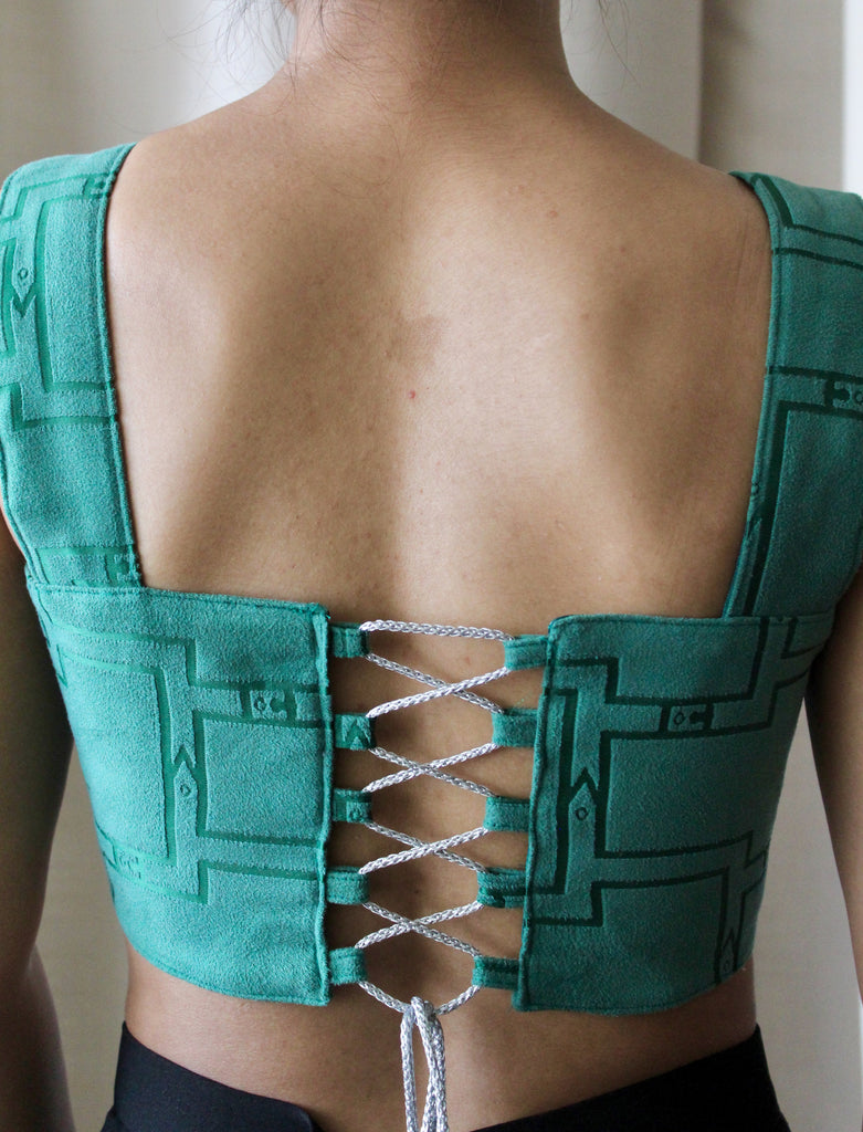 This corset has been reworked from a pre-loved upholstery fabric. Saved from landfill, the fabric has been upcycled into a modern silhouette that carries its history into a new life. One-of-a-kind, handmade and crafted to last.