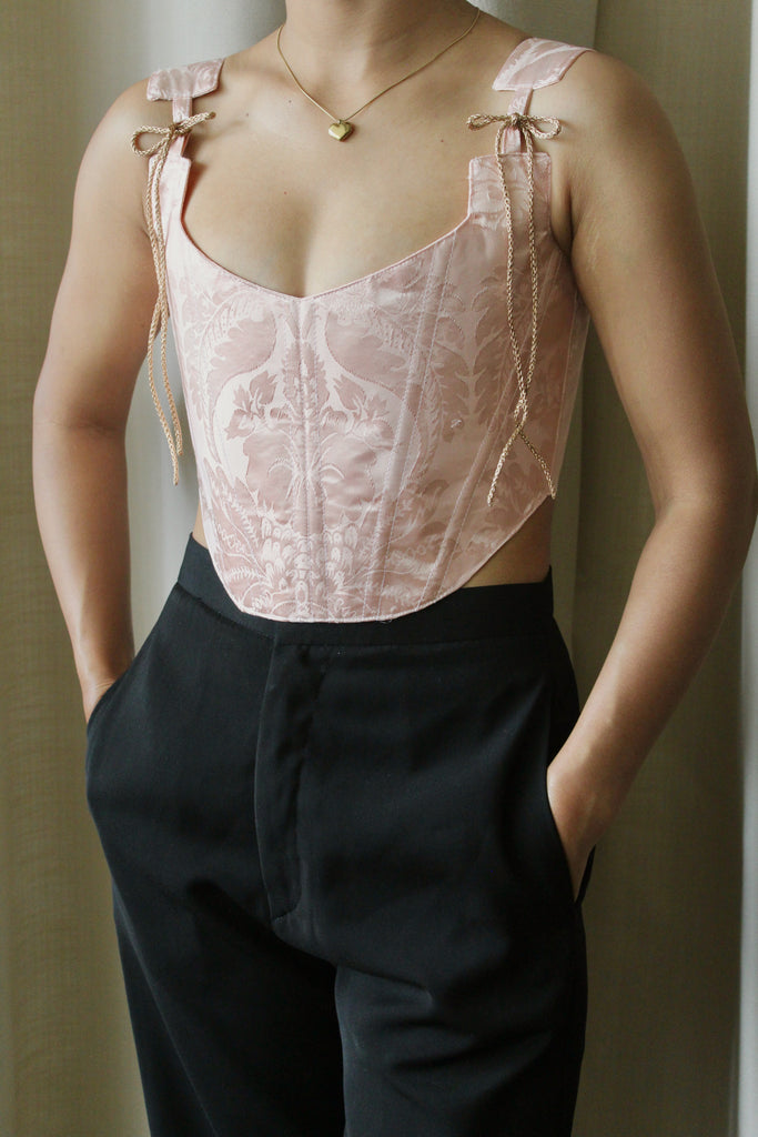 This corset has been reworked from a pre-loved quilt cover. Saved from landfill, the fabric has been upcycled into a modern silhouette that carries its history into a new life. One-of-a-kind, handmade and crafted to last.