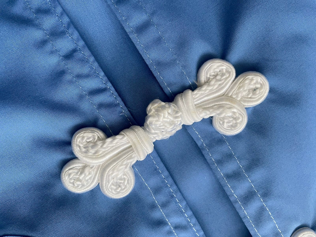 Each of these one-of-a-kind corset shirts begins life as a preloved men’s shirt that is carefully deconstructed, reshaped, and tailored into a waist-cinching silhouette that celebrates the contrast between classic tailoring and modern femininity. Finished with intricate hand-knotted Chinese buttons, the piece carries both heritage and edge — a refined statement in slow, considered fashion.