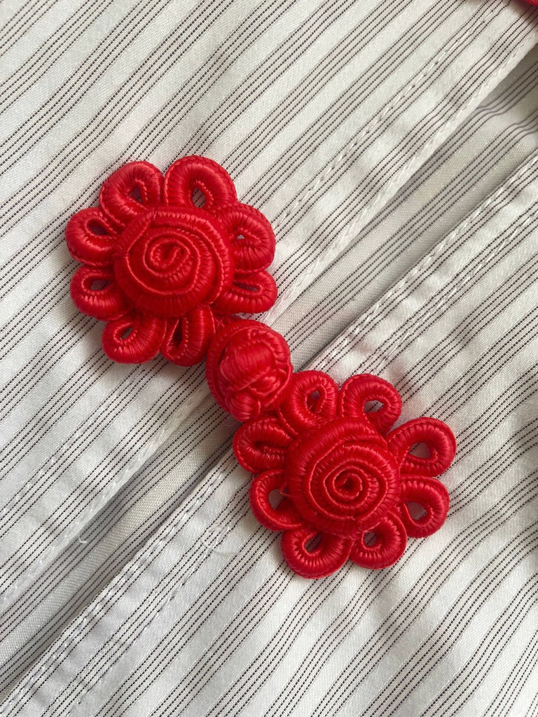 Each of these one-of-a-kind corset shirts begins life as a preloved men’s shirt that is carefully deconstructed, reshaped, and tailored into a waist-cinching silhouette that celebrates the contrast between classic tailoring and modern femininity. Finished with intricate hand-knotted Chinese buttons, the piece carries both heritage and edge — a refined statement in slow, considered fashion.